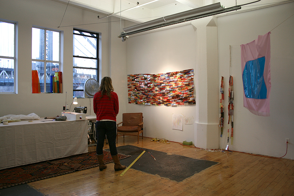ADA gallery is pleased to announce new collaborative works by installation artist Rachel Hayes and painter Jiha Moon. Jiha's gestural marks and seductive imagery are painted on, and embedded in, Rachel's sculptural panels that are sewn from fabric and Korean mulberry paper. Rachel's use of shiny swatches of colorful fabric contrast nicely with Jiha's soft fuzzy brush strokes as they attempt to tame the wild beast they envision their collaboration to be. Yasu means "Beast" in Korean, therefore "Our Yasu" is a tribute to their team effort.With separate studios in Kansas City, Brooklyn, and Atlanta, there is a great deal of negotiation and compromise necessary as they construct and deconstruct work before meeting face to face onsite to create their installations. Hayes and Moon have been working together since meeting in 2007 at the Art Omi residency in New York. Their first collaborative effort, "Outflow" was featured in the group exhibition "More Mergers & Acquisitions" curated by Stuart Horodner at The Atlanta Contemporary Art Center, 2009. They followed this with a large work entitled "Chutes and Tears" at The Lab Gallery in New York last April, a grand landscape of fabric and paint which unfolded and revealed itself as one walked past the corner window gallery. This work featured the use of recycled blue jeans, which were collected, shredded, often bleached, and reassembled into curtain-like forms creating cascades and shelters. For their exhibition at ADA gallery, the team will site specifically re-install "Chutes and Tears".Jiha has finished her recent project with The Fabric workshop and Museum and was in four person show at The Fabric workshop and museum in Philladelphia this past spring 2011. Rachel had her fellowship exhibition at Saint-Gaudens national historic site in Cornish, NH in 201o and is getting ready for her one year residency at Mary Walsh Sharpe foundtion in Brooklyn this September, 2011.This is Jiha and Rachel's third collaborative exhibition and debut exhibition at ADA gallery as a team.